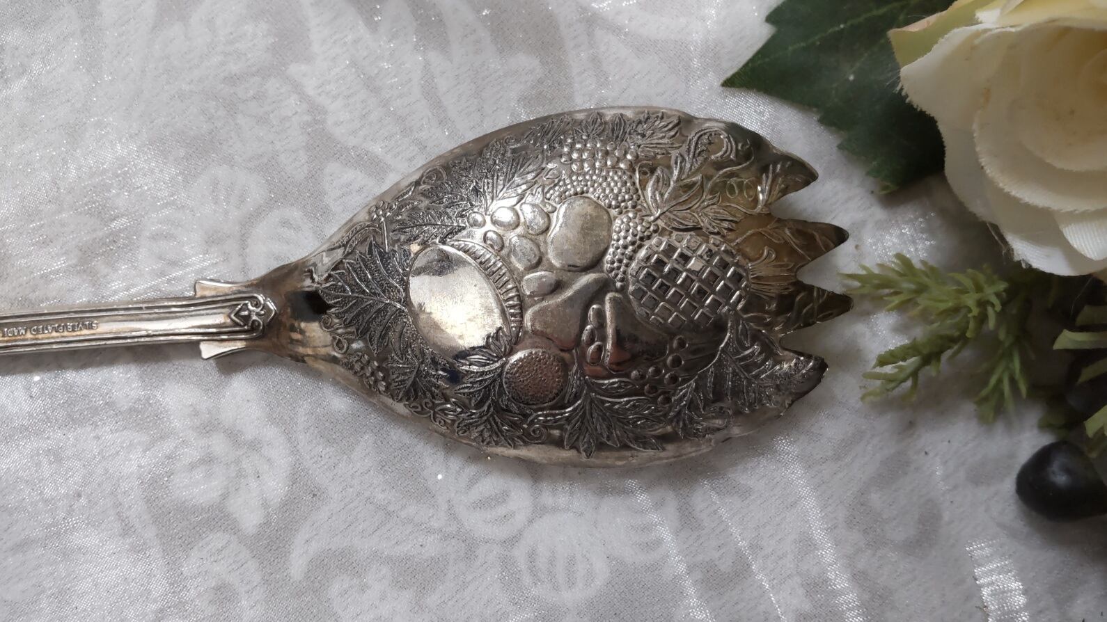 アンティーク シルバープレート フルーツ柄が美しいサーブスプーン